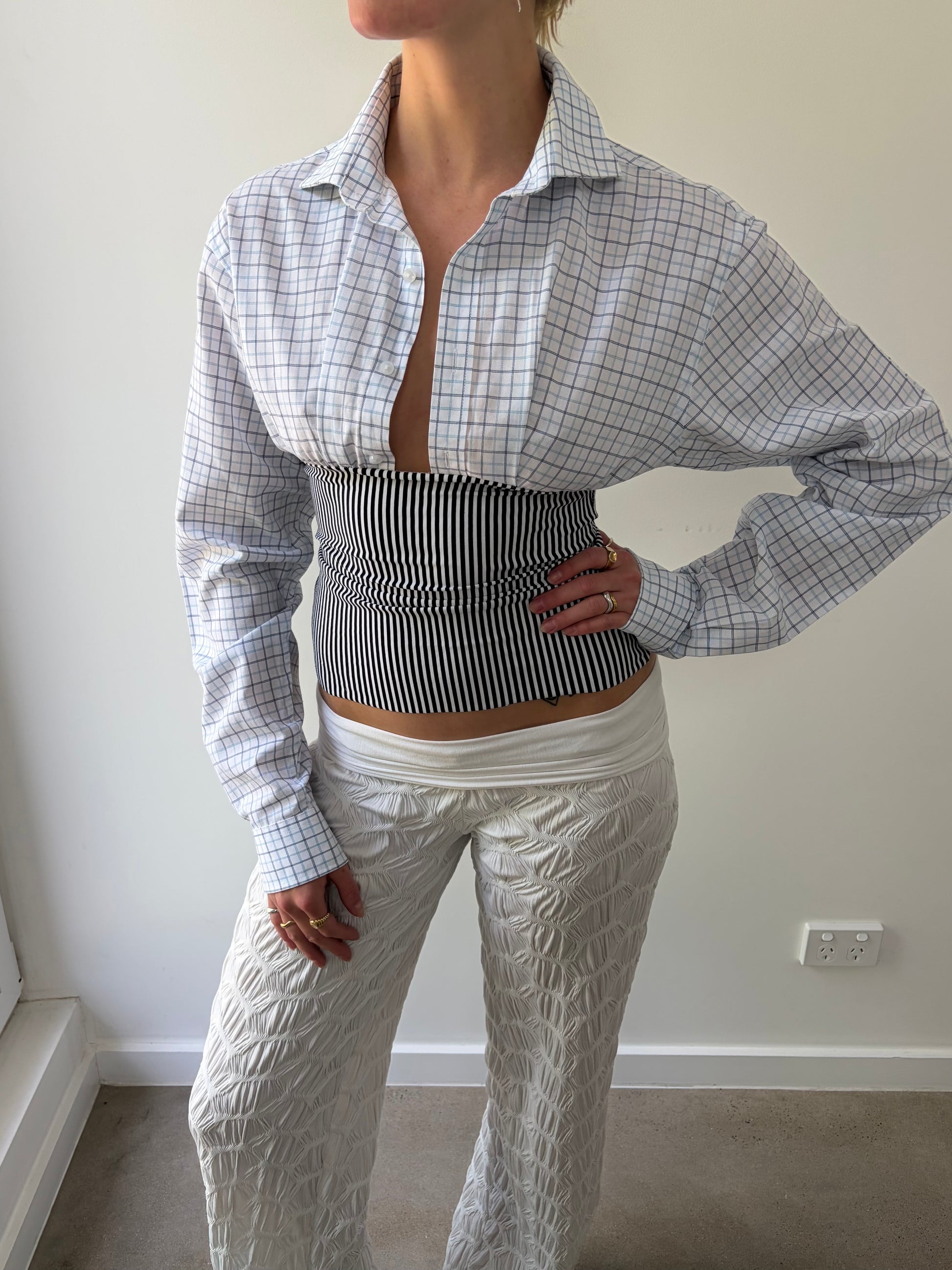 FABRIC COMPONENTS: Shirt: 100% cotton, Striped fabric: 92% organic cotton, 8% elastin.